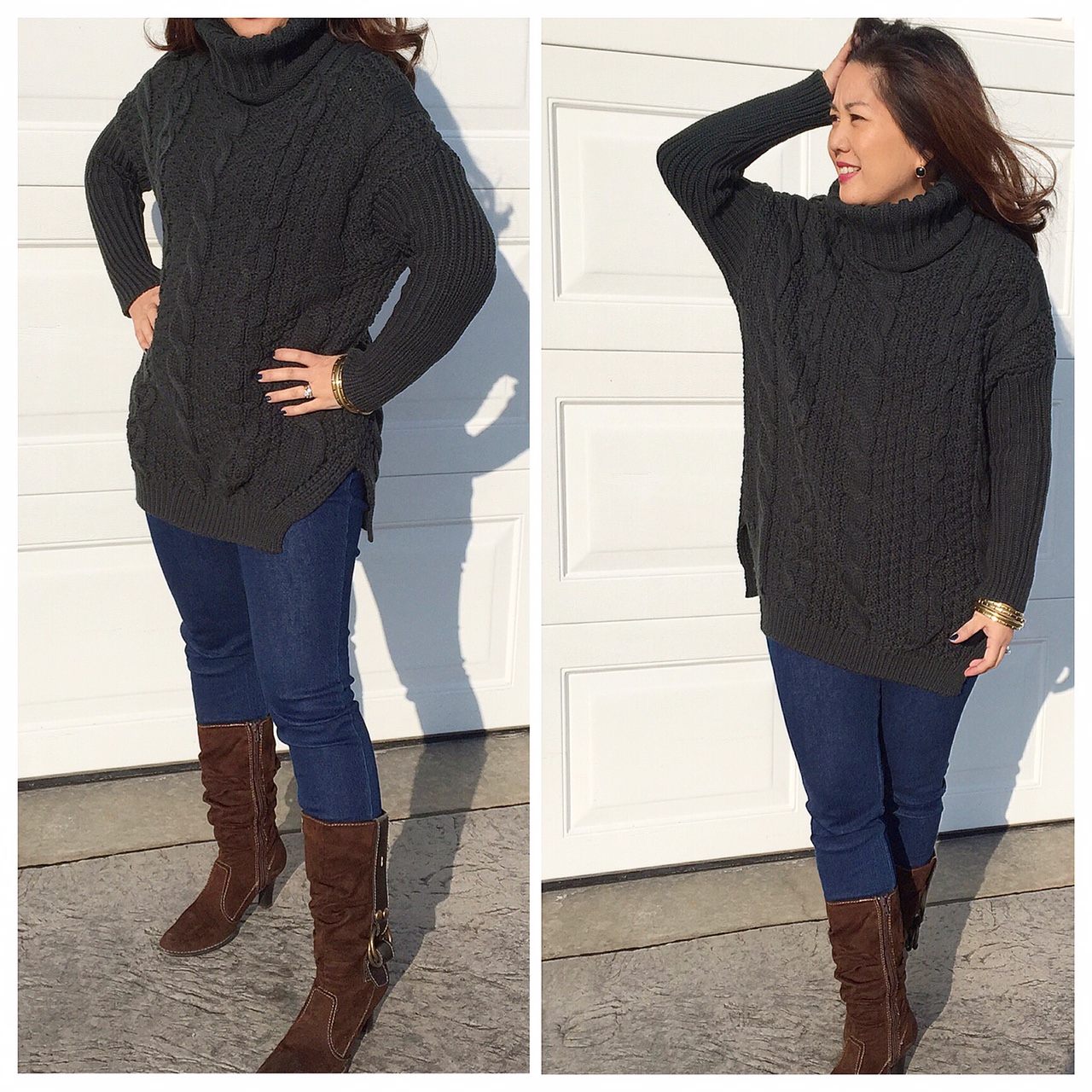 IMG_2458Chicwish Dark Green Cable Knit Roll Neck Sweater $59.90
